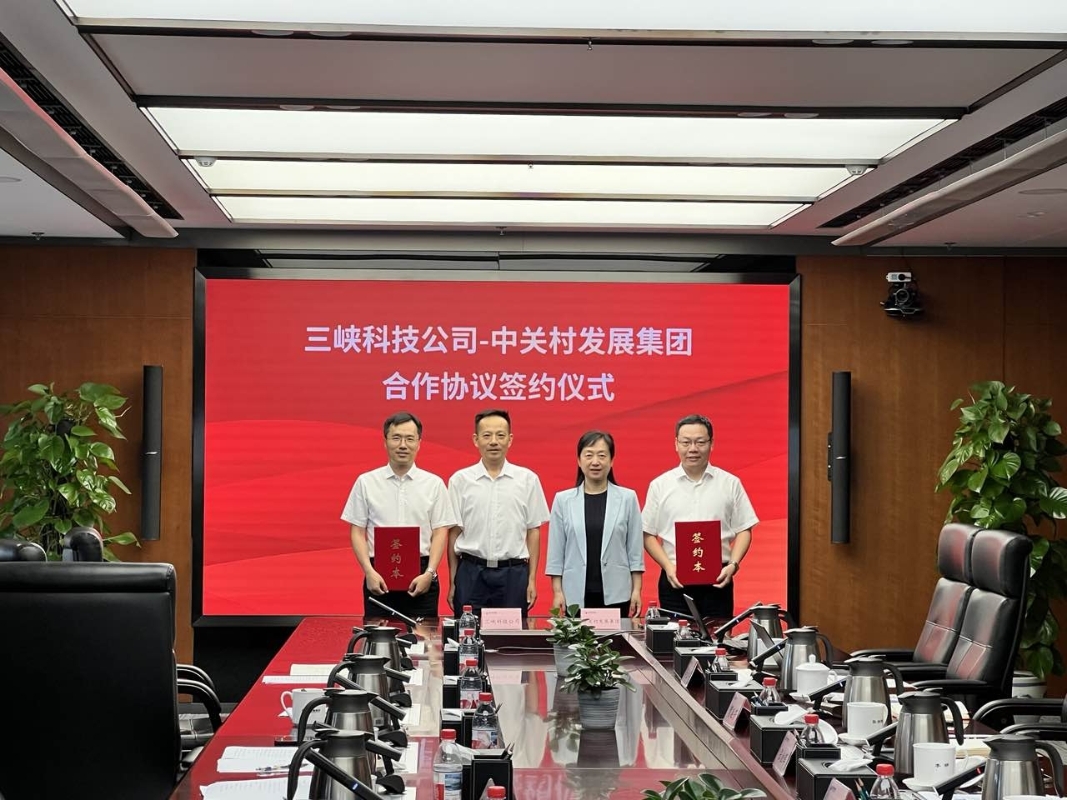 7月10日,三峽科技公司總經理、黨委副書記周華杰一行赴中關村發展集團調研,雙方就推動產業創新、科技成果轉化等方面開展深入交流,簽訂合作協議,揭牌成立三峽科技公司-中關村發展集團綠色能源產業創新中心。三峽科技公司總會計師、黨委委員肖冰,副總經理、黨委委員齊志新參加調研。中關村發展集團總經理、黨委副書記李妍,副總經理張金輝參加座談。
