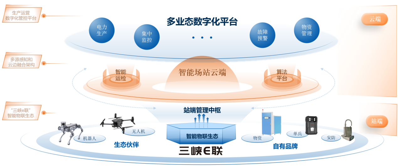 《新能源場站智能生產運營解決方案》為三峽高科與三峽能源合作完成,該成果集面向新能源場站生產運營智能化轉型場景,以三峽高科“三峽e聯”品牌智能物聯生態為基礎,緊貼一線實際,自底向上構筑智能場站整體解決方案。以“三峽e聯”智能物聯生態保障場景落地,云邊協同架構打造數據和算法中樞,多業態數字化平臺驅動業務和功能。