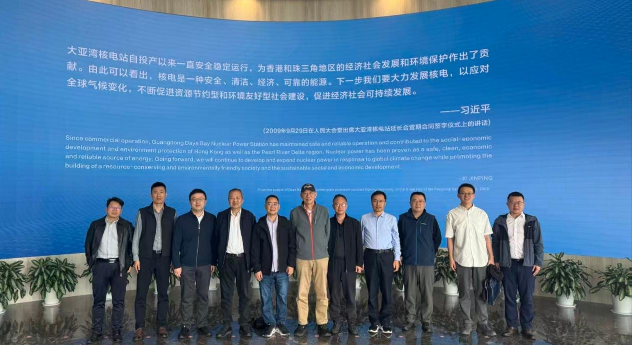在華鵬科技能源公司,調研團隊參觀了大亞灣科普基地,并與副總經理黃文有及有關負責人圍繞核能小堆與石化耦合工業降碳進行交流座談。